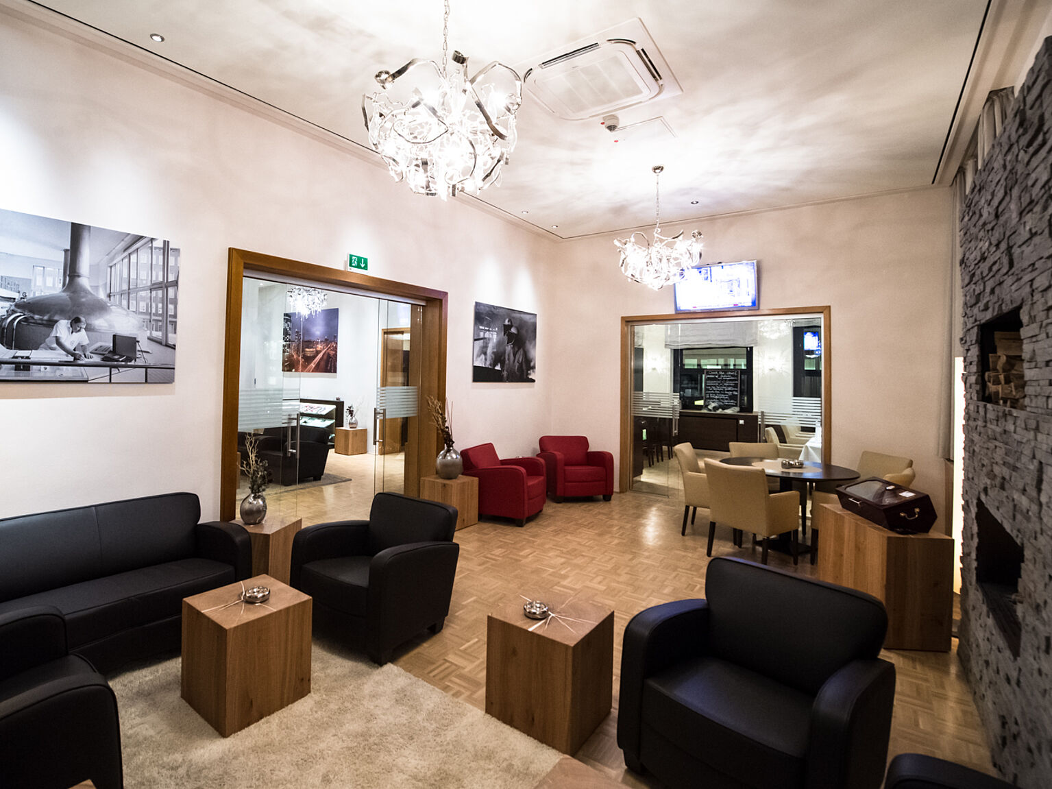 Räume zum Entspannen und Genießen mitten in der City: Mit der modernen Lounge bietet der Industrieklub seinen Mitgliedern exklusive, ästhetisch anspruchsvolle und technisch reich ausgestattete Räume. Holz und Glas schaffen eine moderne und wohnliche Atmosphäre.